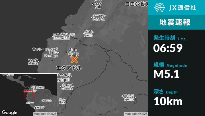 12月20日 06:59頃、エクアドルのArchidonaから北西31kmの地点でM5.1の地震がありました。