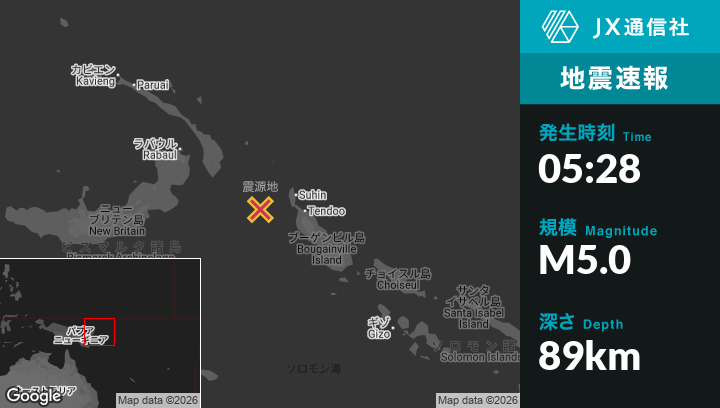 | 震源地 | パプアニューギニアのPangunaから西北西200kmの地点 |