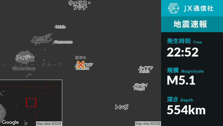 | 震源地 | フィジーのLevukaから東275kmの地点 |