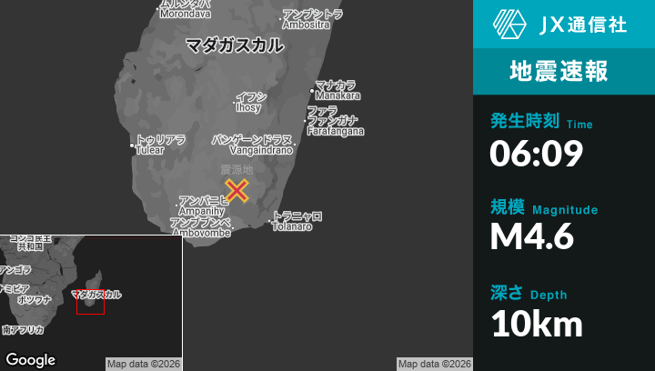 | 震源地 | マダガスカルのAmboasaryから北北西89kmの地点 |