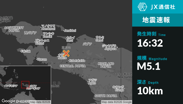 | 震源地 | インドネシアのNabireから東北東93kmの地点 |