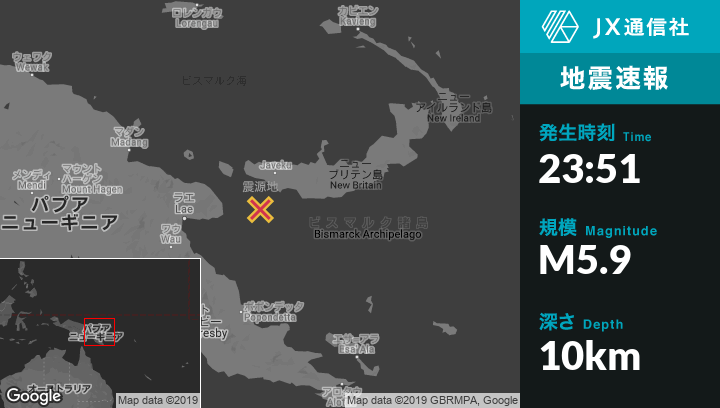 | 震源地 | パプアニューギニアのFinschhafenから東北東91kmの地点 |