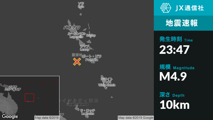 | 震源地 | バヌアツのPort-Vilaから西116kmの地点 |