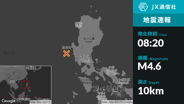 | 震源地 | フィリピンのBolitocから西南西61kmの地点 |