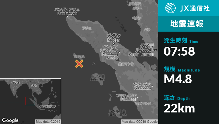 | 震源地 | インドネシアのSinabangから南西33kmの地点 |