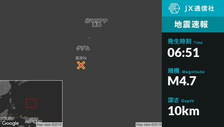 | 震源地 | グアムのMerizo Villageから南96kmの地点 |