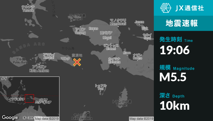 | 震源地 | インドネシアのAmahaiから東232kmの地点 |