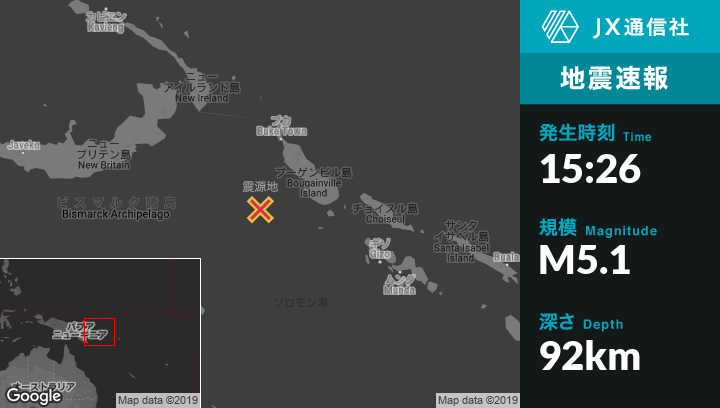| 震源地 | パプアニューギニアのPangunaから西南西153kmの地点 |