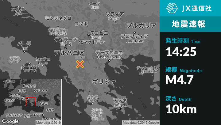 | 震源地 | アルバニアのKorceから南南東10kmの地点 |