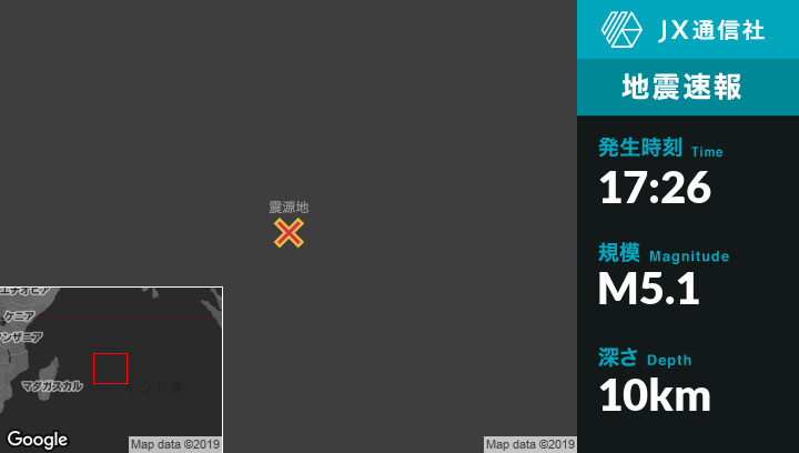 | 震源地 | モーリシャスのPort Mathurinから北東510kmの地点 |