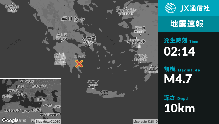 | 震源地 | ギリシャのLeonidiから南東17kmの地点 |
