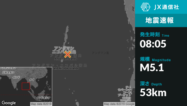 | 震源地 | インドのPort Blairから南南東47kmの地点 |