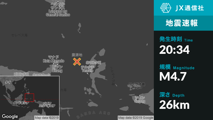 | 震源地 | インドネシアのKota Ternateから北西138kmの地点 |