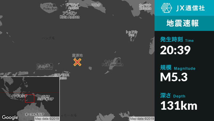 | 震源地 | インドネシアのSaumlakiから西北西289kmの地点 |