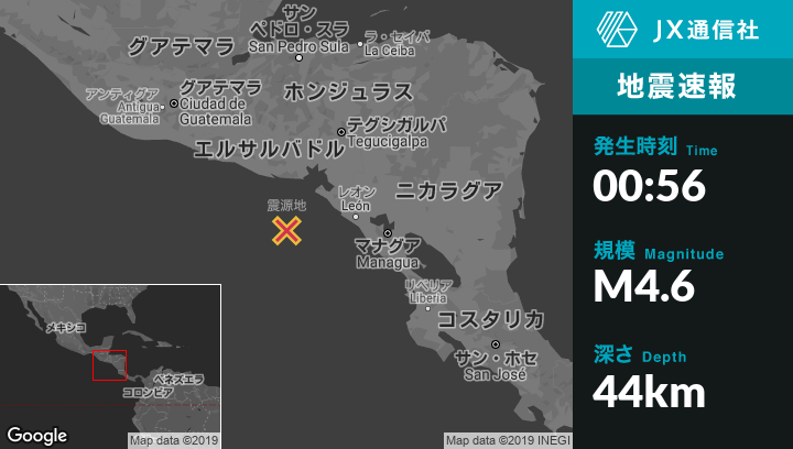 | 震源地 | ニカラグアのJiquililloから西南西102kmの地点 |