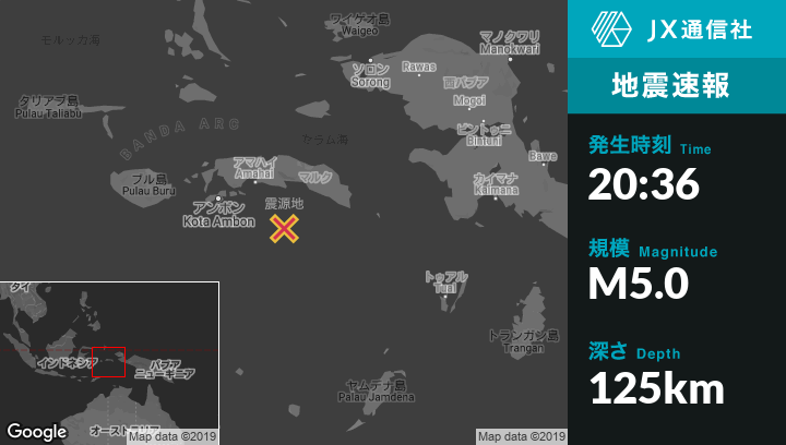 | 震源地 | インドネシアのAmahaiから南東111kmの地点 |