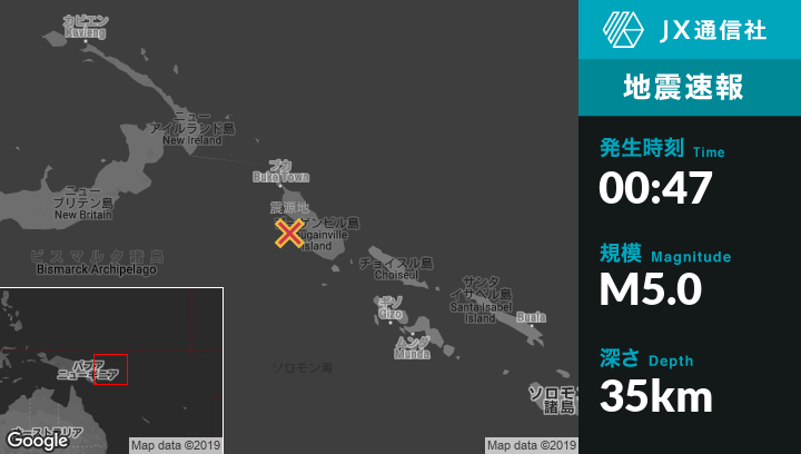 | 震源地 | パプアニューギニアのPangunaから西72kmの地点 |