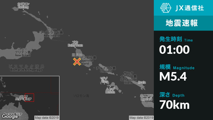 | 震源地 | パプアニューギニアのPangunaから西77kmの地点 |