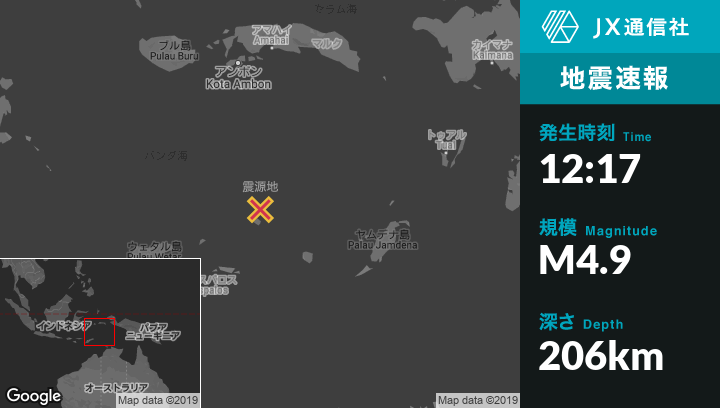 | 震源地 | インドネシアのSaumlakiから西北西321kmの地点 |