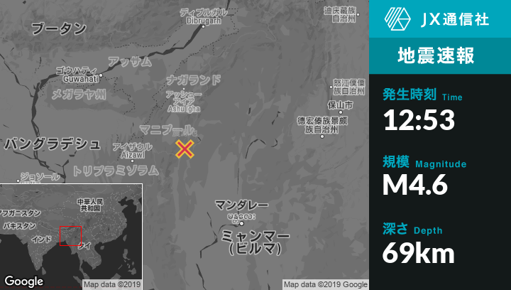 | 震源地 | インドのKakchingから南東49kmの地点 |