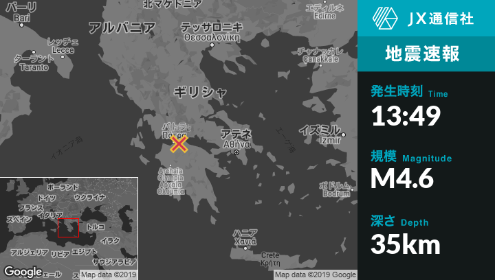 | 震源地 | ギリシャのAno Kastritsionから東北東6kmの地点 |