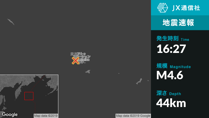 11月26日 16:27頃、アラスカのAttu Stationから西北西41kmの地点でM4.6の地震がありました。
