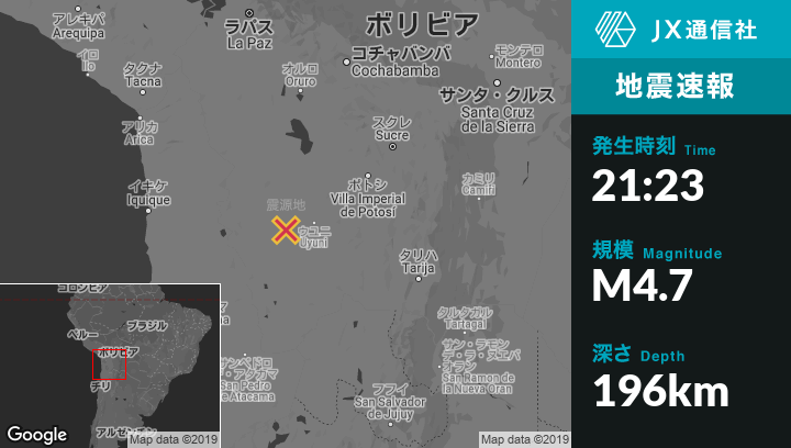 | 震源地 | ボリビアのColchaniから西南西52kmの地点 |