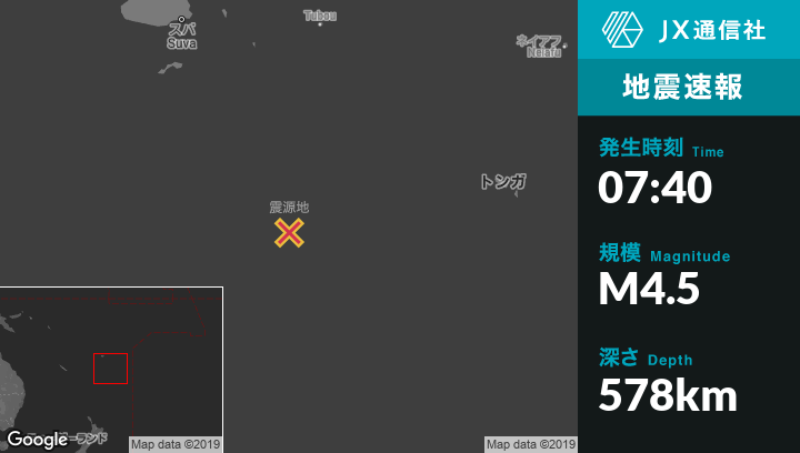 | 震源地 | フィジーのNdoi Islandから南南西166kmの地点 |