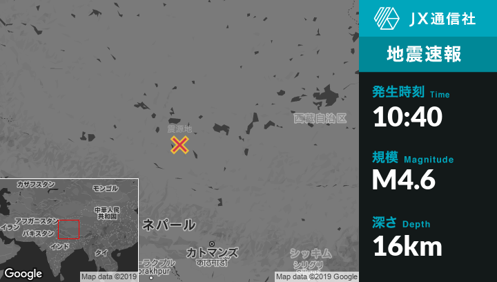 11月28日 10:40頃、中国のZhadongから北103kmの地点でM4.6の地震がありました。