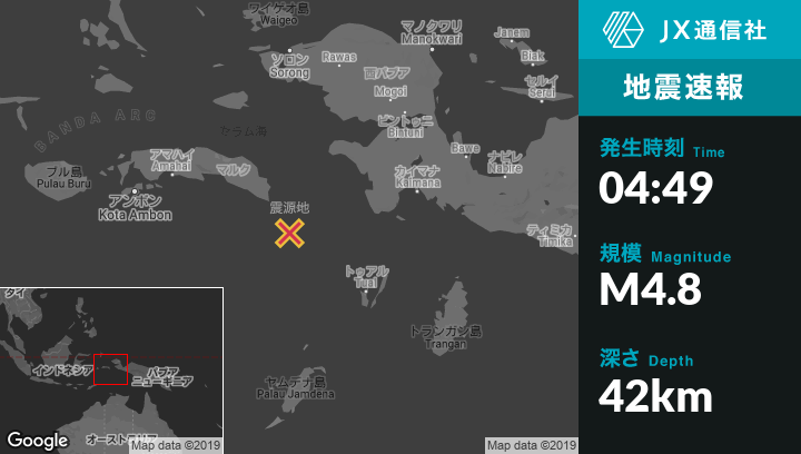 | 震源地 | インドネシアのTualから北西219kmの地点 |
