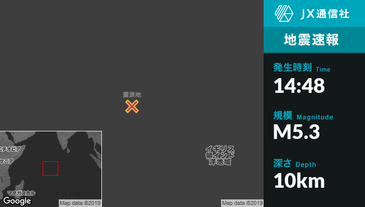 | 震源地 | イギリス領インド洋地域のDiego Garciaから西北西488kmの地点 |