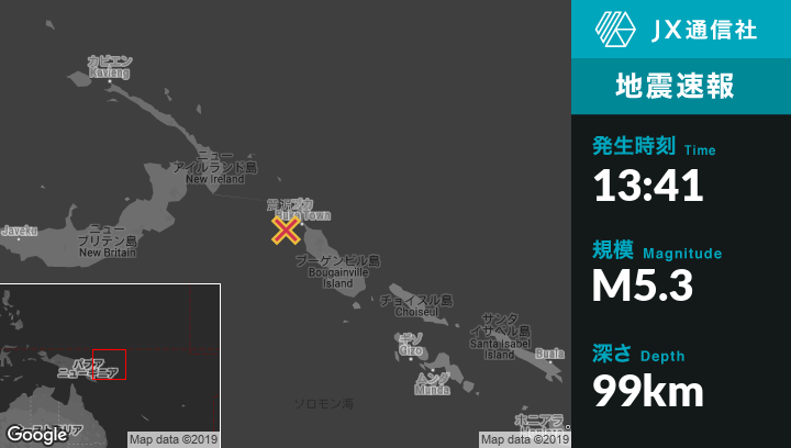 | 震源地 | パプアニューギニアのArawaから西北西160kmの地点 |