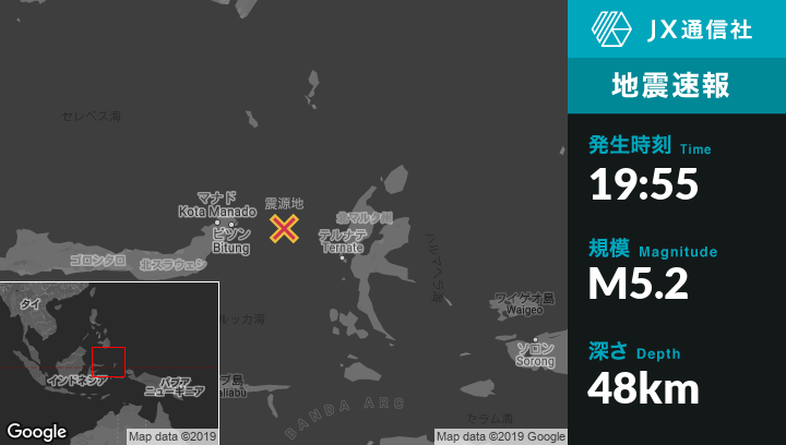 | 震源地 | インドネシアのBitungから東111kmの地点 |