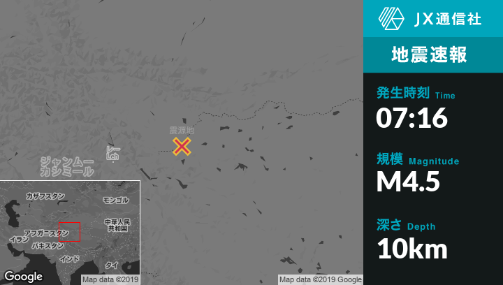 12月20日 07:16頃、中国のRutogから北136kmの地点でM4.5の地震がありました。