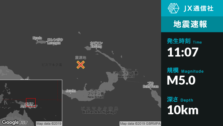 | 震源地 | パプアニューギニアのKaviengから南西164kmの地点 |
