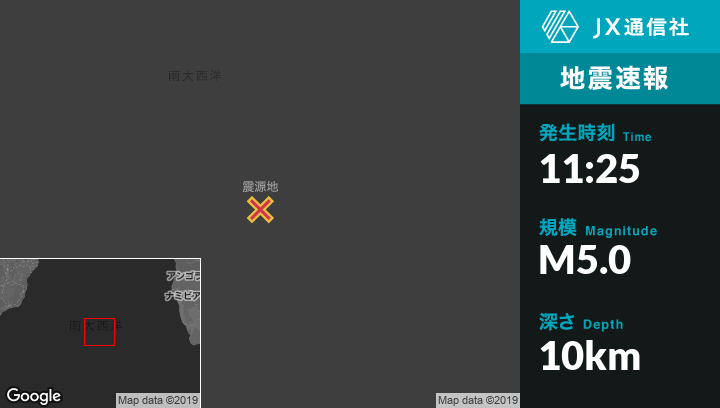 | 震源地 | セントヘレナのEdinburgh of the Seven Seasから北657kmの地点 |
