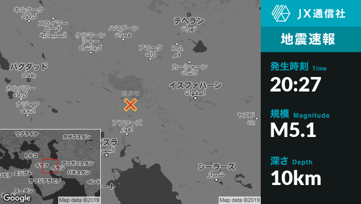 | 震源地 | イランのDezfulから東北東43kmの地点 |