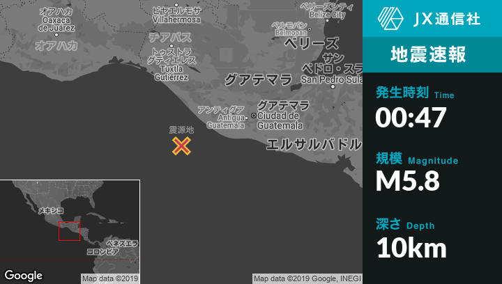 | 震源地 | グアテマラのOcosから南西100kmの地点 |