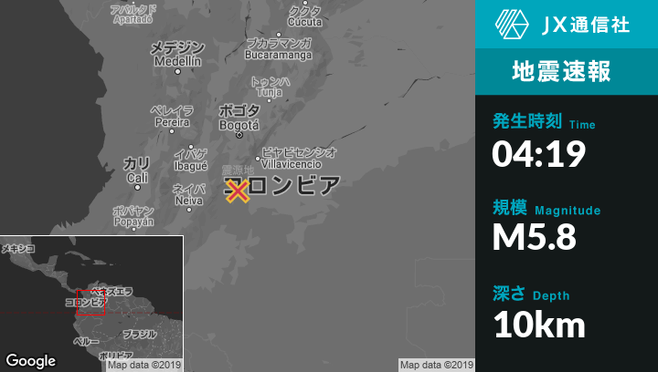 | 震源地 | コロンビアのLejaniasから西南西12kmの地点 |