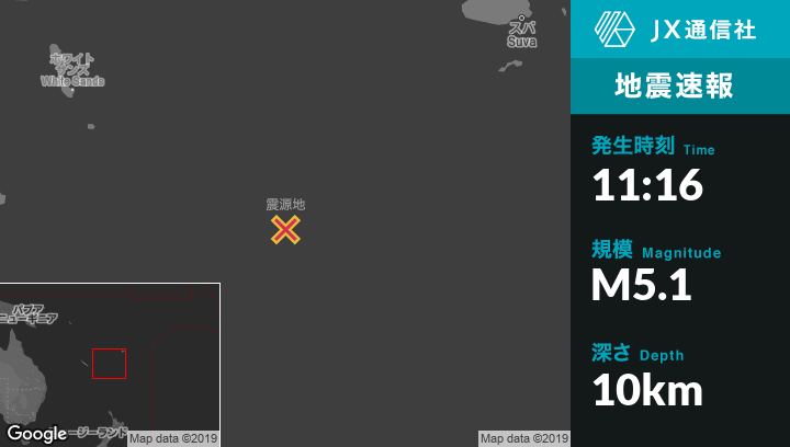 12月26日 11:16頃、フィジーのCeva-i-Raから西南西94kmの地点でM5.1の地震がありました。