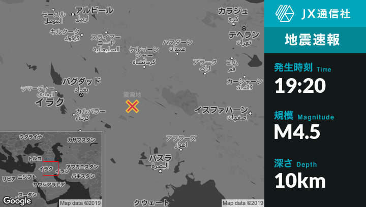 | 震源地 | イランのMehranから東南東40kmの地点 |