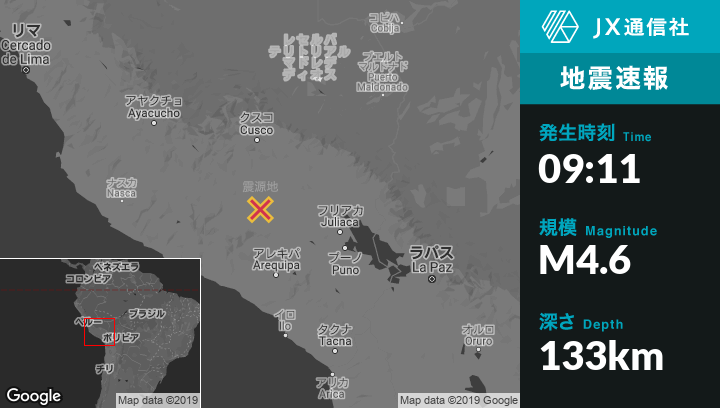 | 震源地 | ペルーのSanto Tomasから南南東55kmの地点 |