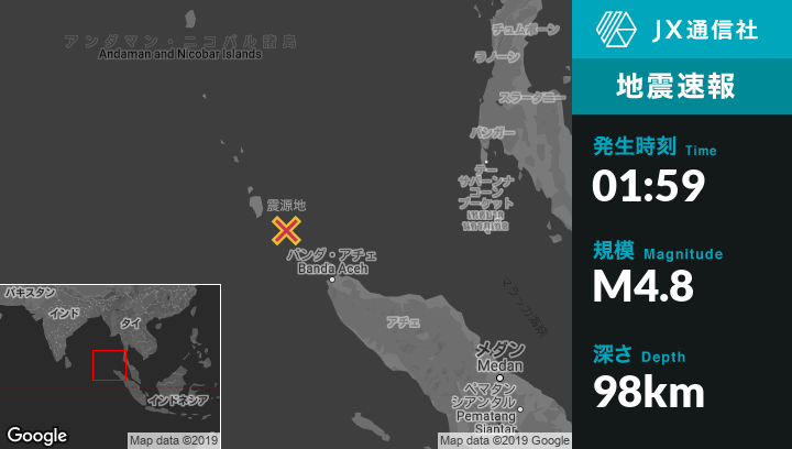 | 震源地 | インドネシアのSabangから北西131kmの地点 |