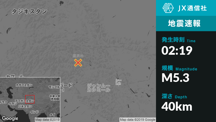 12月31日 02:19頃、パキスタンのIdgahから北北西38kmの地点でM5.3の地震がありました。