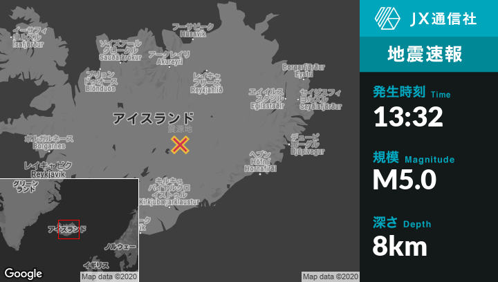 | 震源地 | アイスランドのAkureyriから南110kmの地点 |