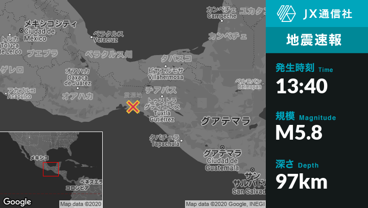 1月05日 13:40頃、メキシコのSanto Domingo Zanatepecから南6kmの地点でM5.8の地震がありました。