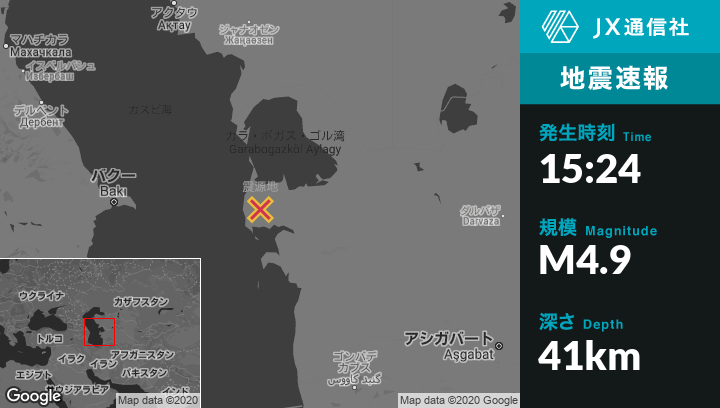 | 震源地 | トルクメニスタンのTurkmenbasyから北北東42kmの地点 |