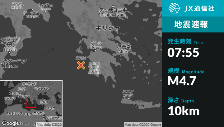 1月07日 07:55頃、ギリシャのLithakiaから南南西27kmの地点でM4.7の地震がありました。