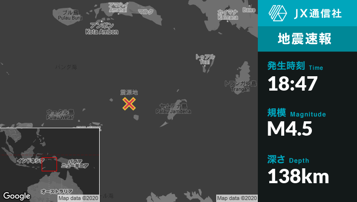 | 震源地 | インドネシアのSaumlakiから西北西227kmの地点 |