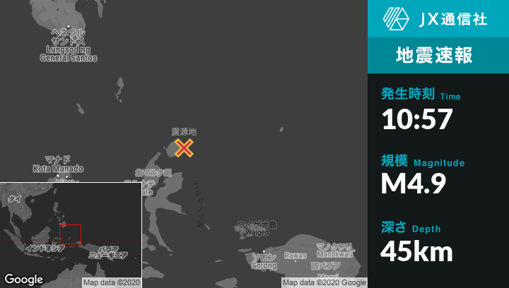 | 震源地 | インドネシアのTobeloから北東115kmの地点 |